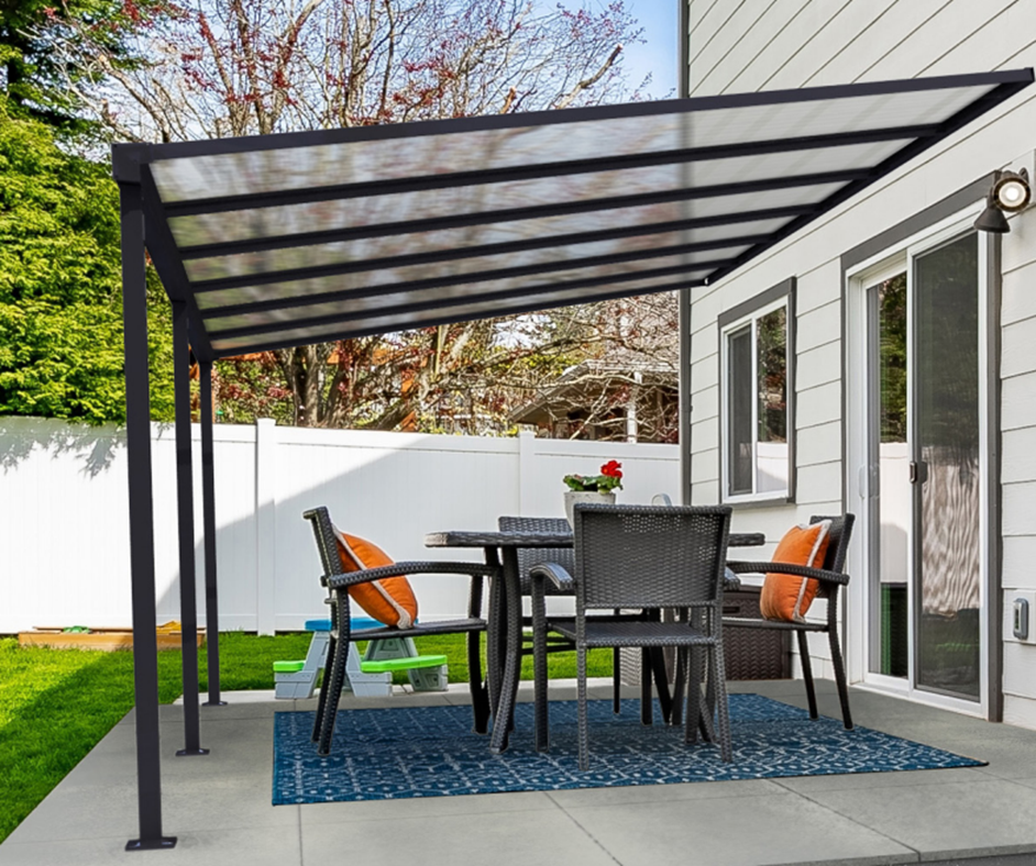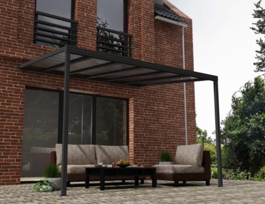 Made in the UK, the canopy kit is supplied with powder coated aluminum profiles and multi-wall polycarbonate panels.